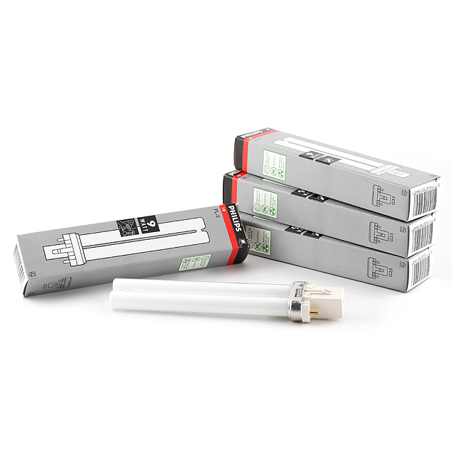 Das Philips UV Röhre passt in die meisten UV Lichthärtungsgeräte mit 2 Pin Fassung Sockel G23. Die Leistung der Philips UV Röhre ist 9 Watt mit einen Wellenbereich 350nm bis 400nm. Die Haftung der UV-Gele hängt unmittelbar mit der Qualität der Röhren zusammen.
